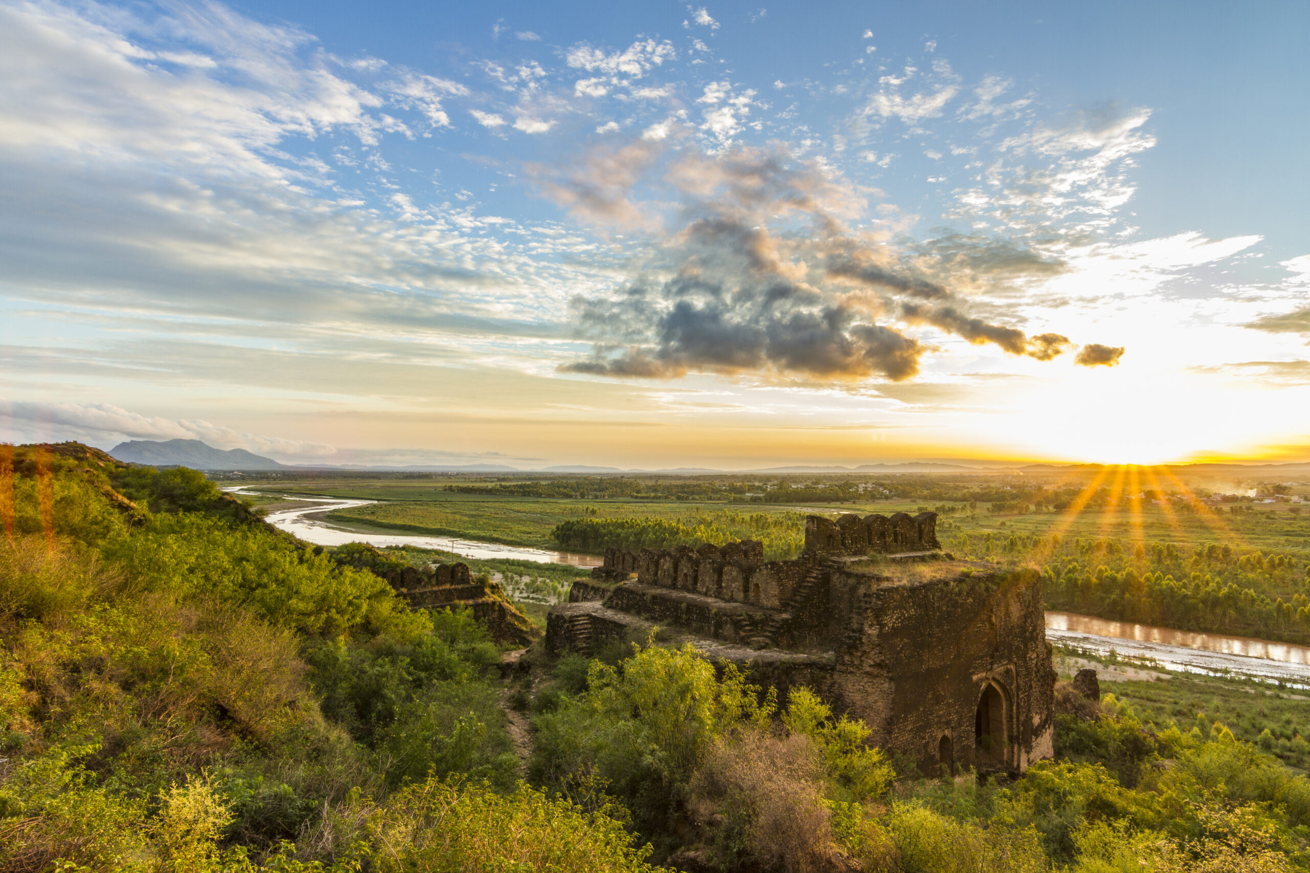 A centre of tourism attraction, Rohtas Fort which is located about 16 km from Jhelum, Punjab.. Rohtas fort was built by Sher Shah Suri and is standing like a remarkable Islamic military architecture. To control the Ghakkars, the construction strategy was there to built it on the hill alongside the Kahan River.